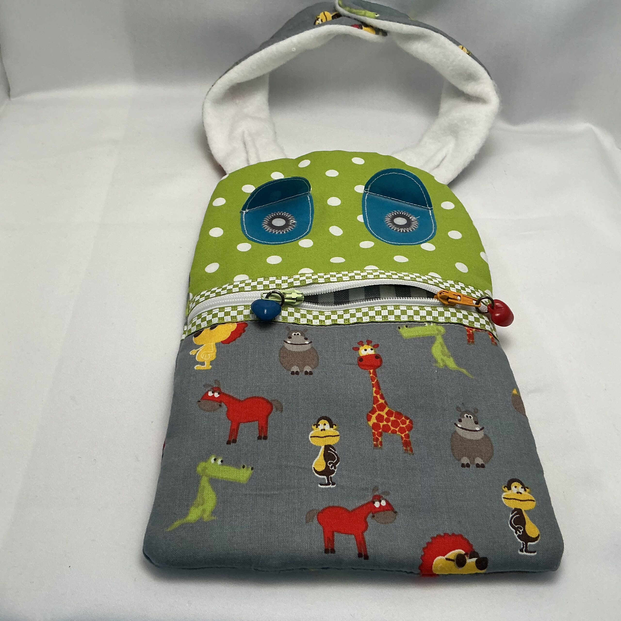 Deze vrolijke kindertas is meer dan een tas: het is een knuffelvriendje! Gemaakt van katoen met een rits die dienstdoet als een lachende mond. De oogjes zijn van gecoat katoen en gevende tas een ondeugende blik. Met de drukknopen aan de oren tover je dit in een handomdraai om tot een echte tas. De tas is gevoerd en gewatteerd, zodat kleine spulletjes veilig en comfortabel meegaan op avontuur en logeerpartijen.
