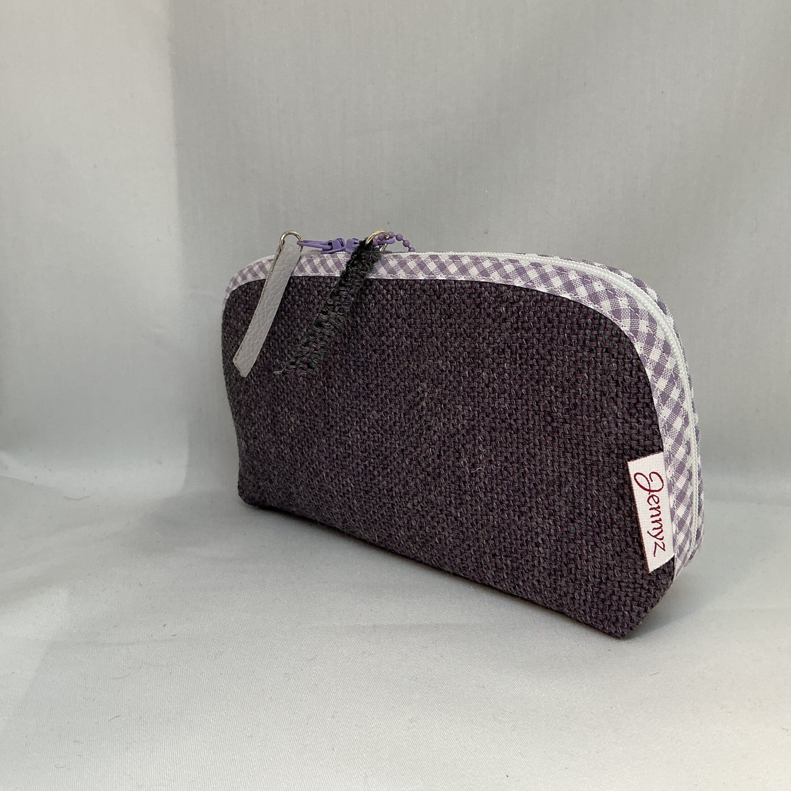 Handgemaakt Make-up Etui van Leer en Gemêleerd Meubelstof
