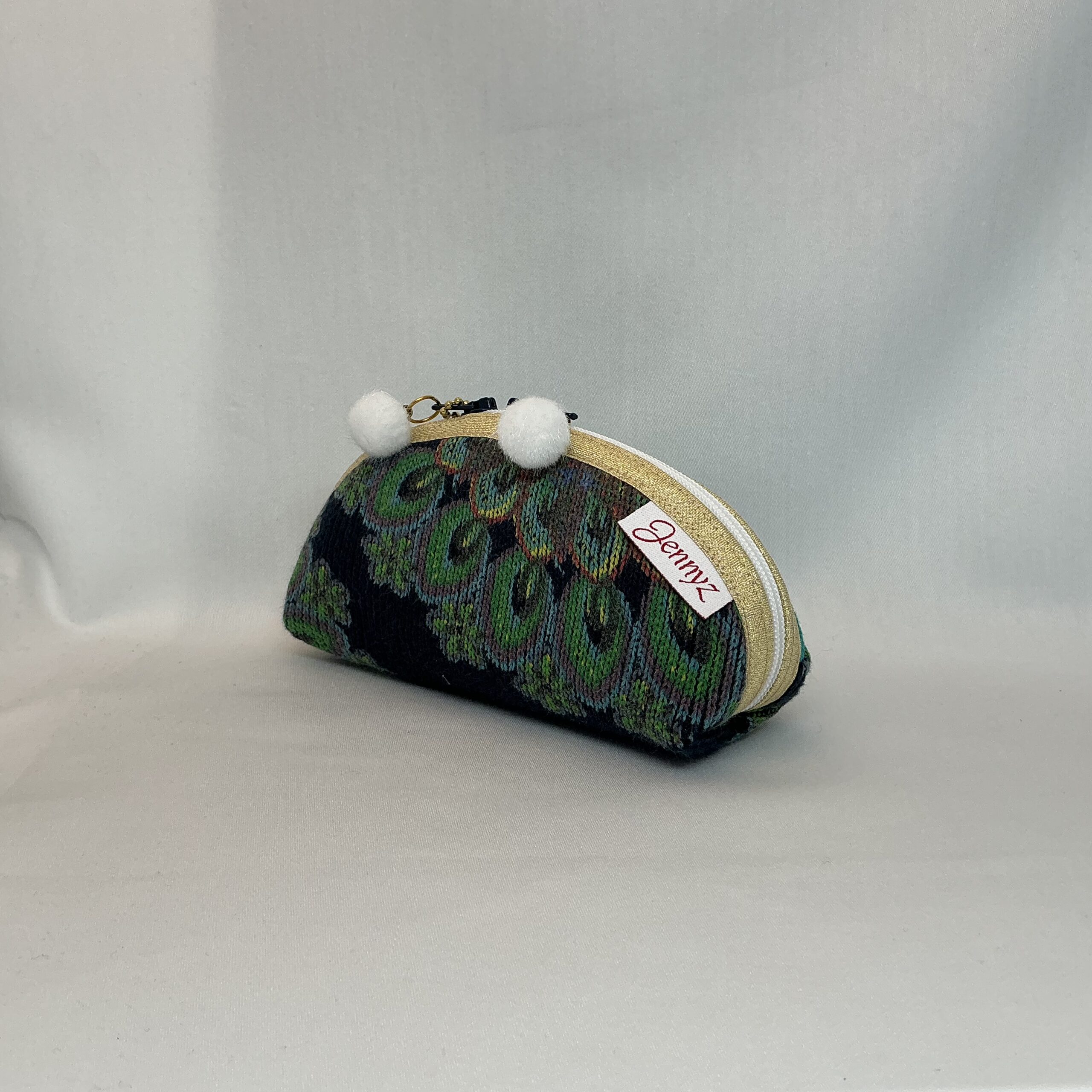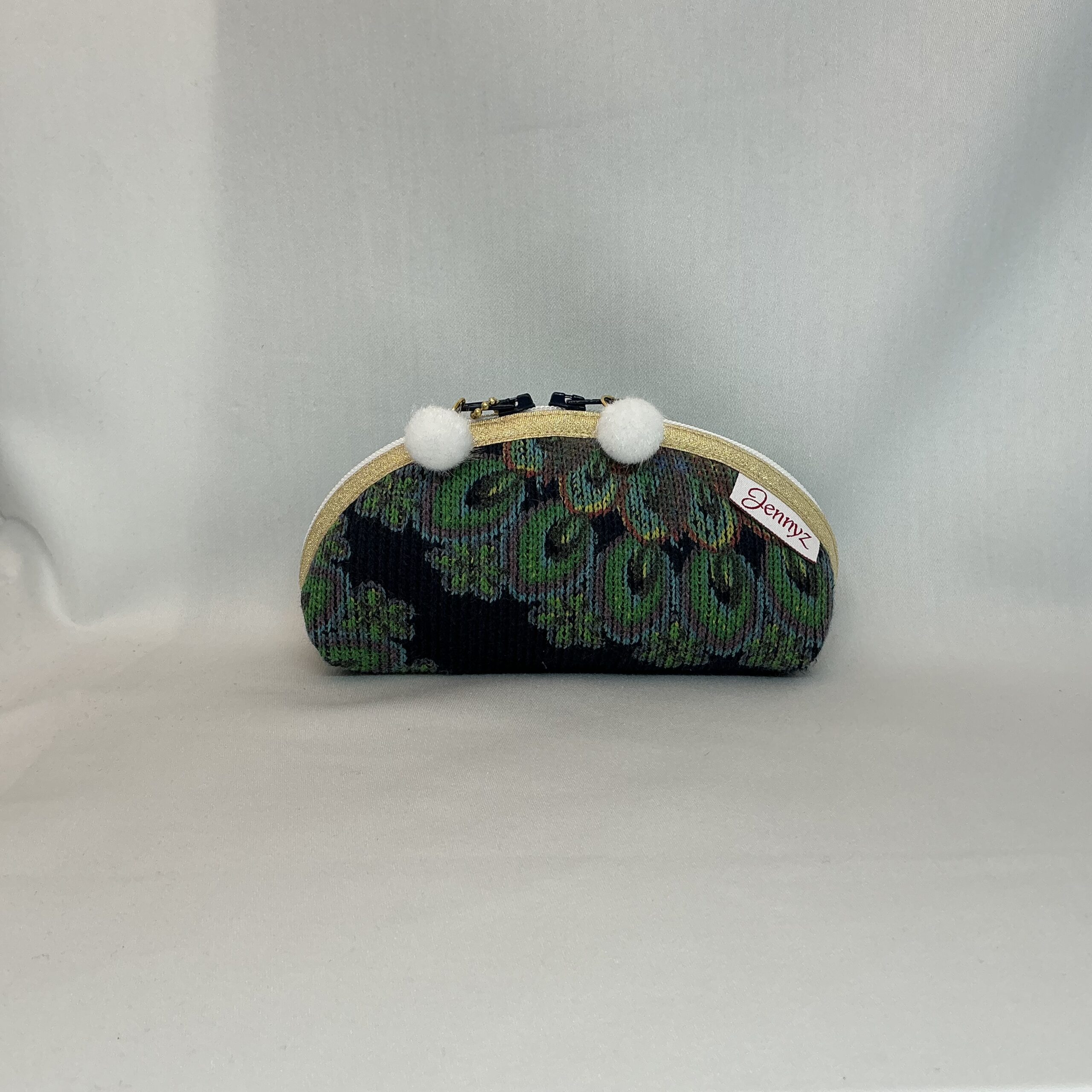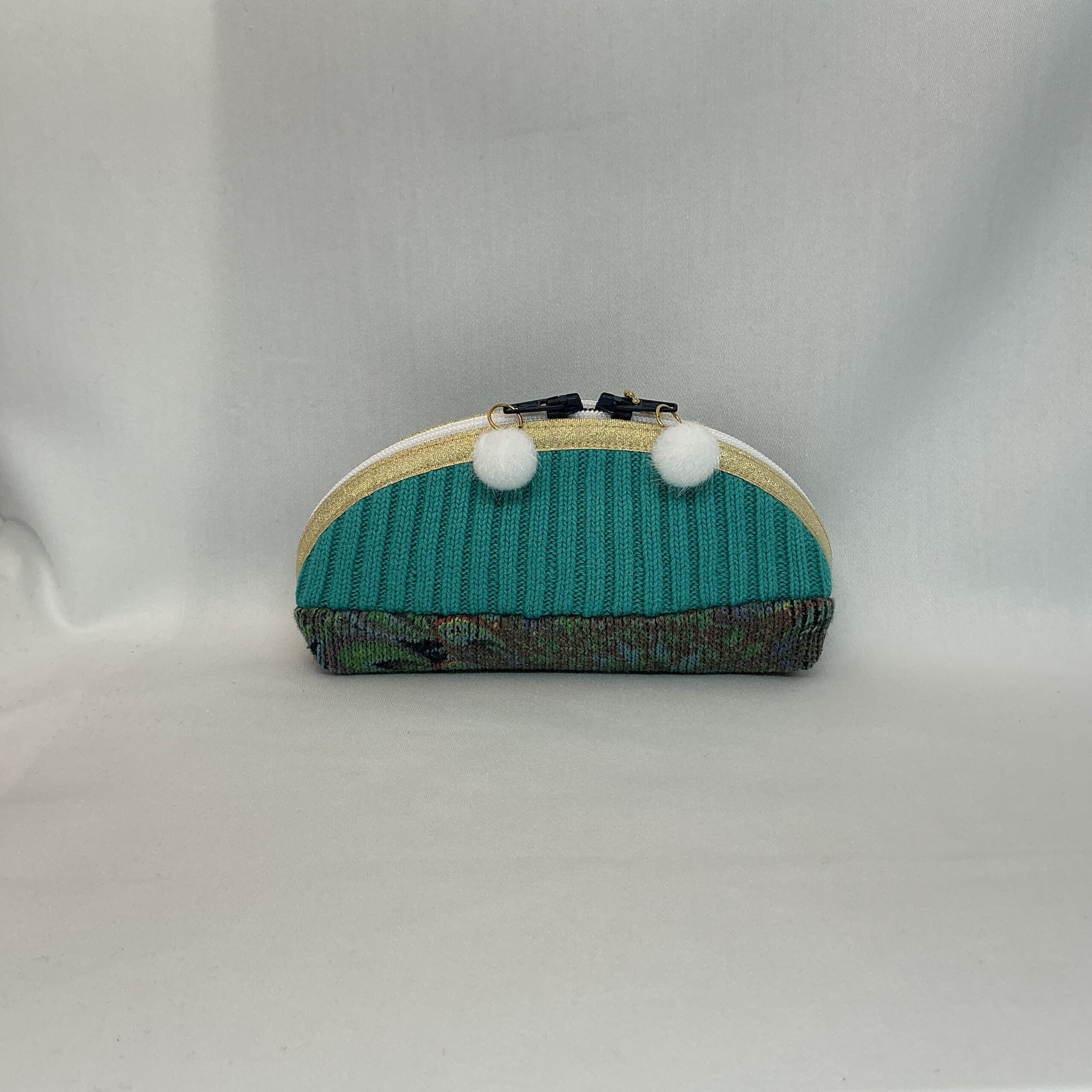 Dit unieke rond etui is met zorg gemaakt van een gerecycled kledingstuk. elk exemplaar is daardoor nét even anders en heeft zijn eigen karakter. Duurzaam, stijlvol en praktisch in gebruik.