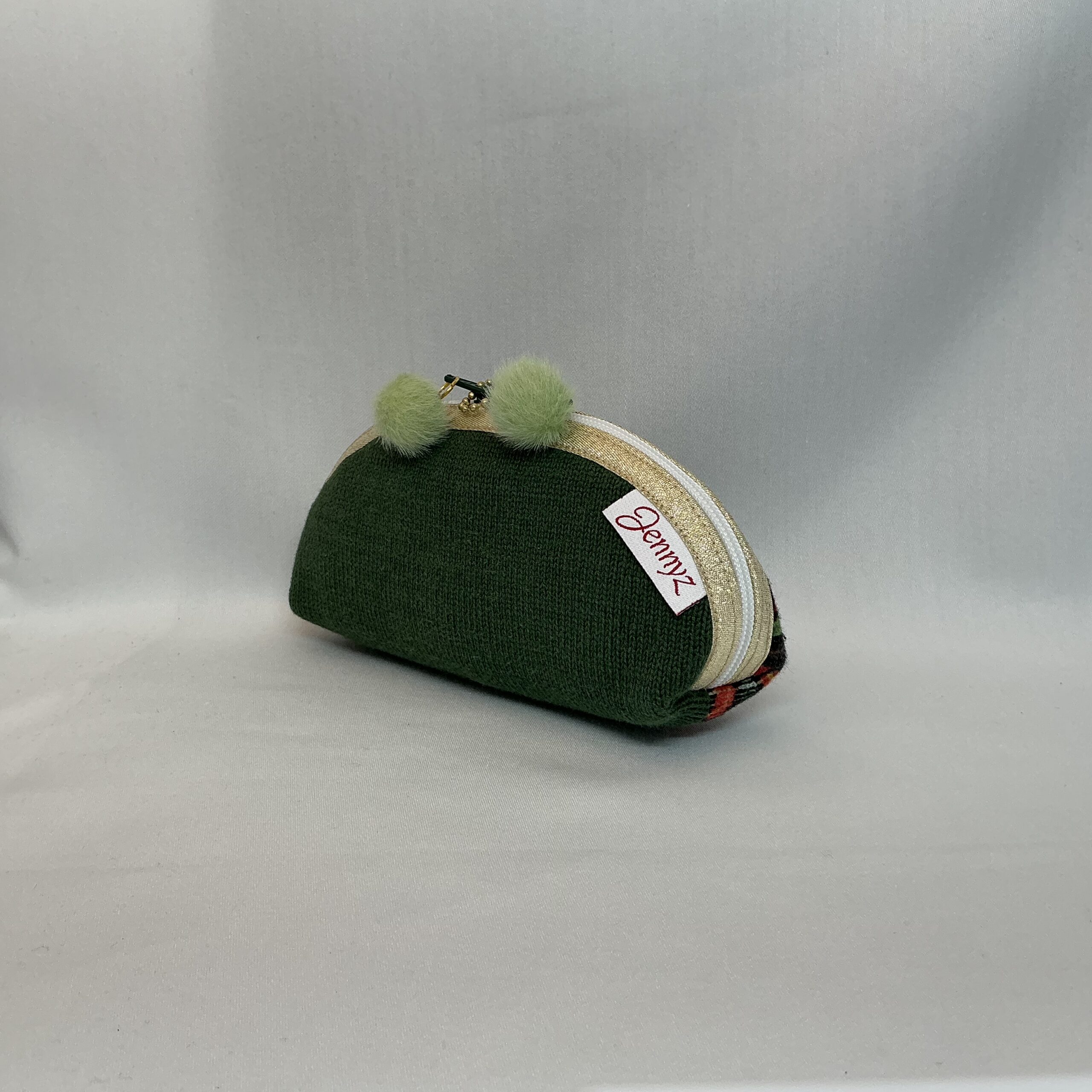 Dit unieke rond etui is met zorg gemaakt van een gerecycled kledingstuk. elk exemplaar is daardoor nét even anders en heeft zijn eigen karakter. Duurzaam, stijlvol en praktisch in gebruik.