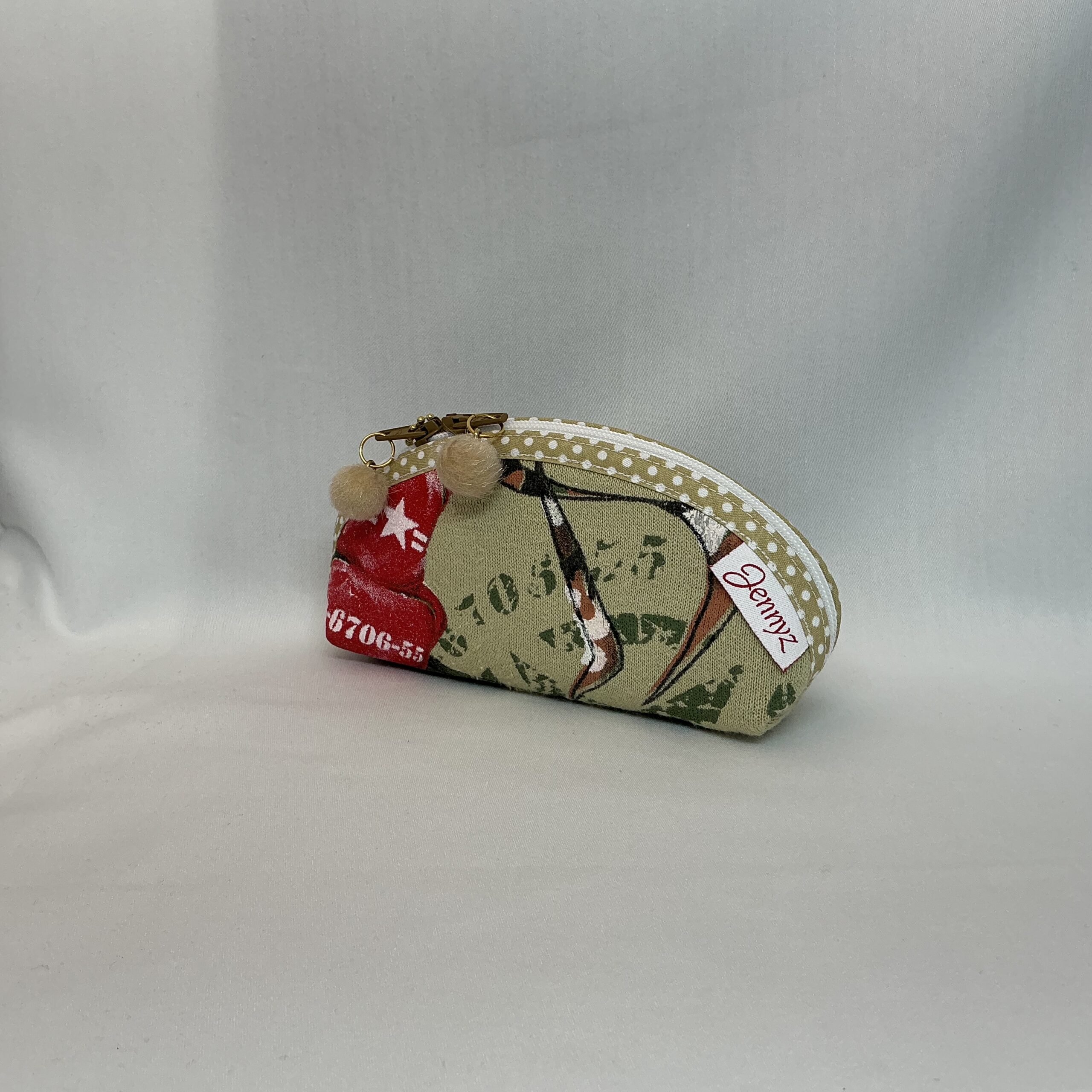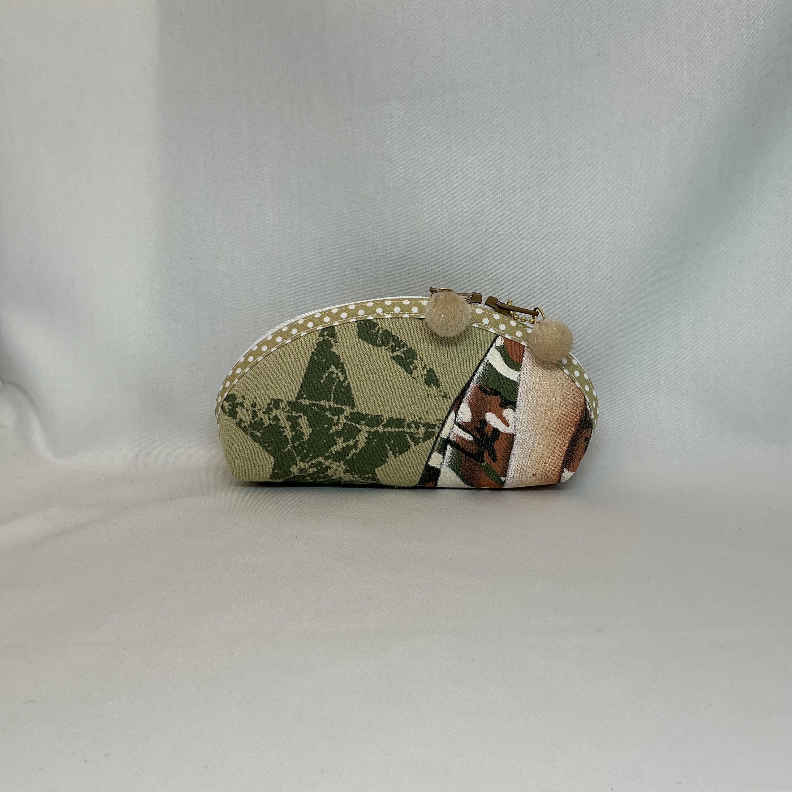 Dit unieke rond etui is met zorg gemaakt van een gerecycled kledingstuk. elk exemplaar is daardoor nét even anders en heeft zijn eigen karakter. Duurzaam, stijlvol en praktisch in gebruik.